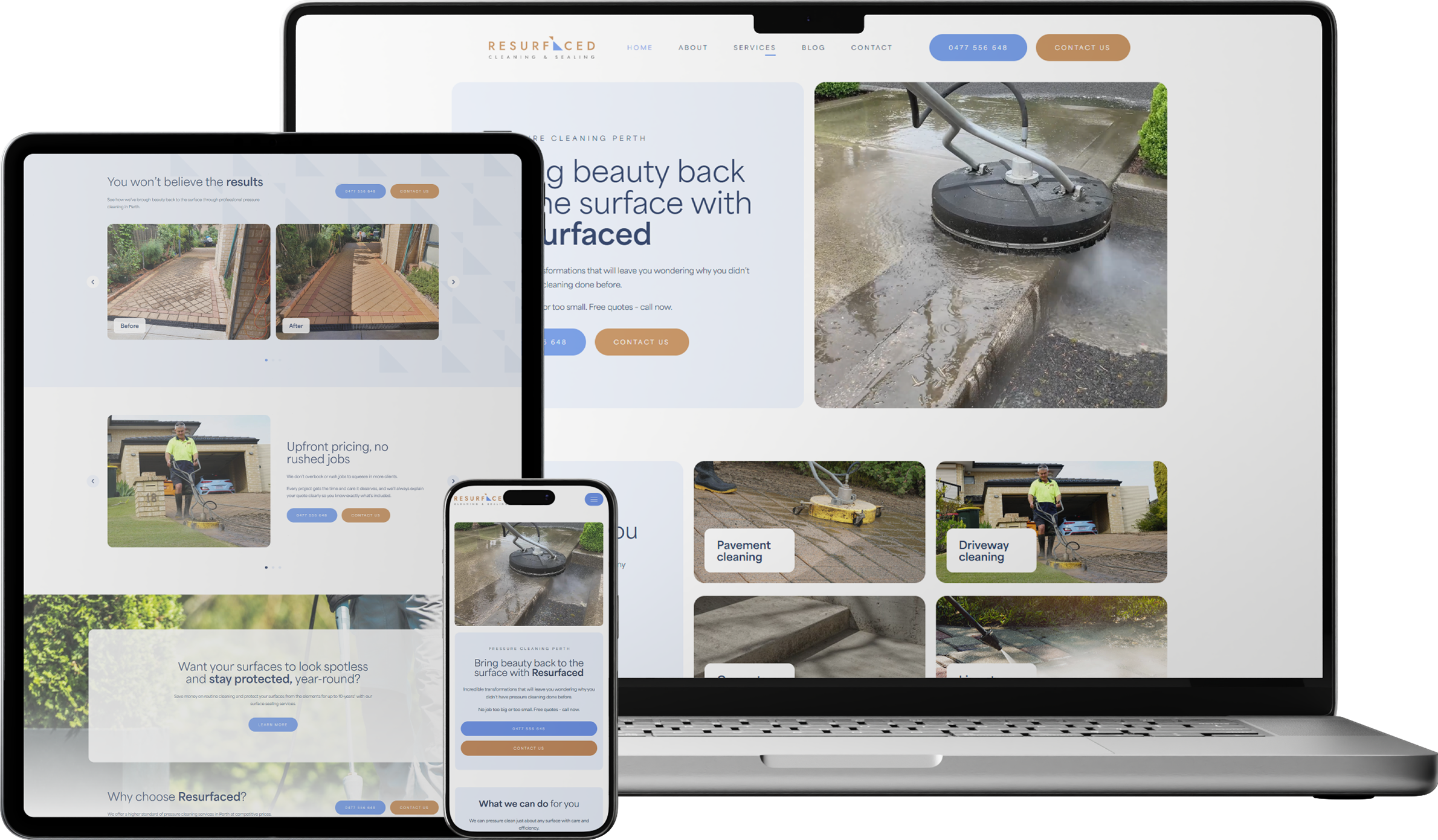 In 2023, we led a complete rebrand evolving the business into Resurfaced Cleaning and Sealing, with a modern, professional identity that better reflected the quality of their work.